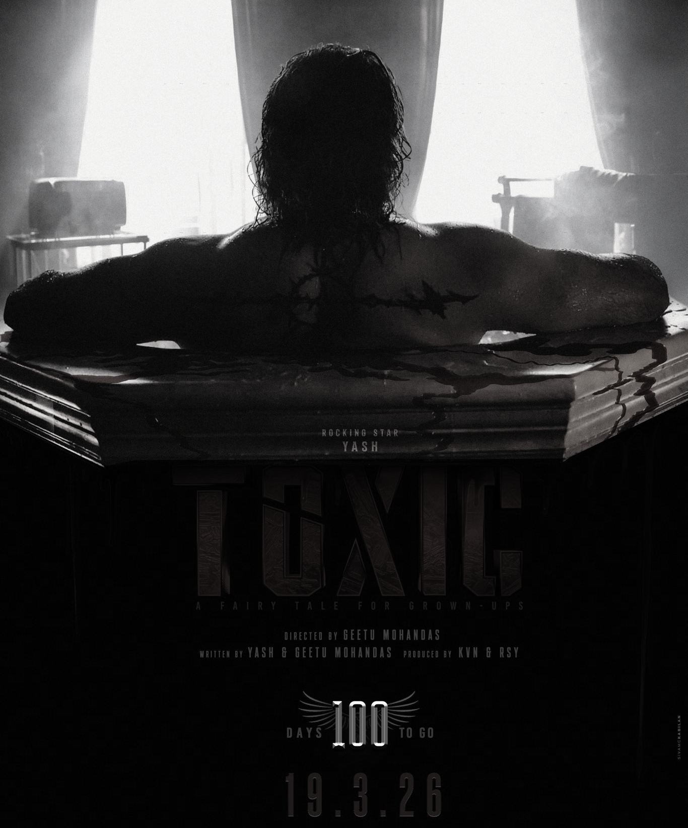 The countdown begins as fans gear up for the much-anticipated release of Toxic: A Fairytale for Grown-Ups . With just 100 days to go, the team unveiled a striking new poster featuring Rocking Star Yash like never before-rugged, inked, and intense, lying in a blood-stained bathtub, perfectly capturing the dark and gritty essence of the film.
