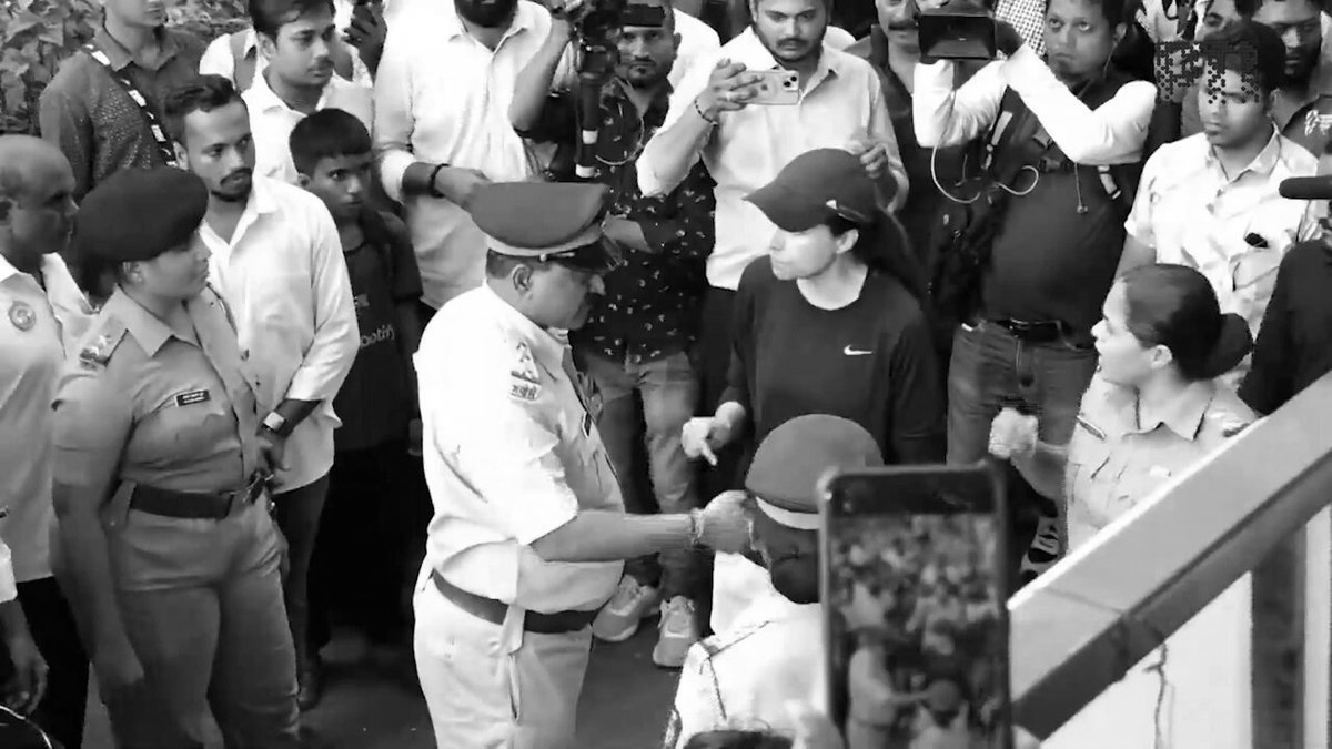 The police , ever faithful to the occasion, then gently protested against her protest , ushering her aside with that particular brand of courteous suppression that Indian authorities have perfected over decades. Because apparently, in India, you can block roads to protest, but you cannot protest the blocking of roads.