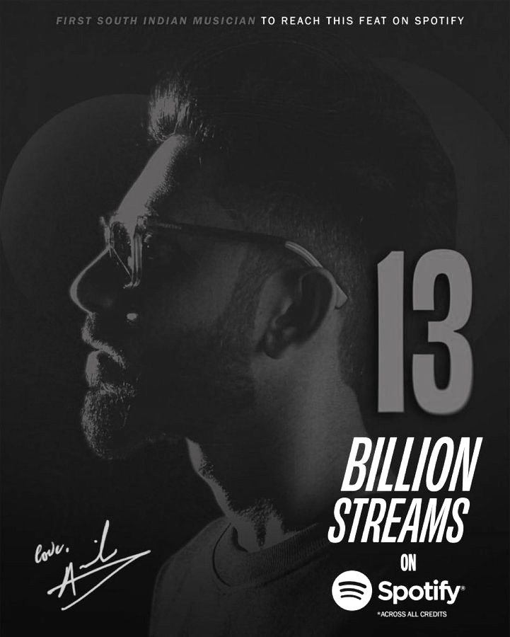 Anirudh Ravichander Breaks 13B Spotify Milestone