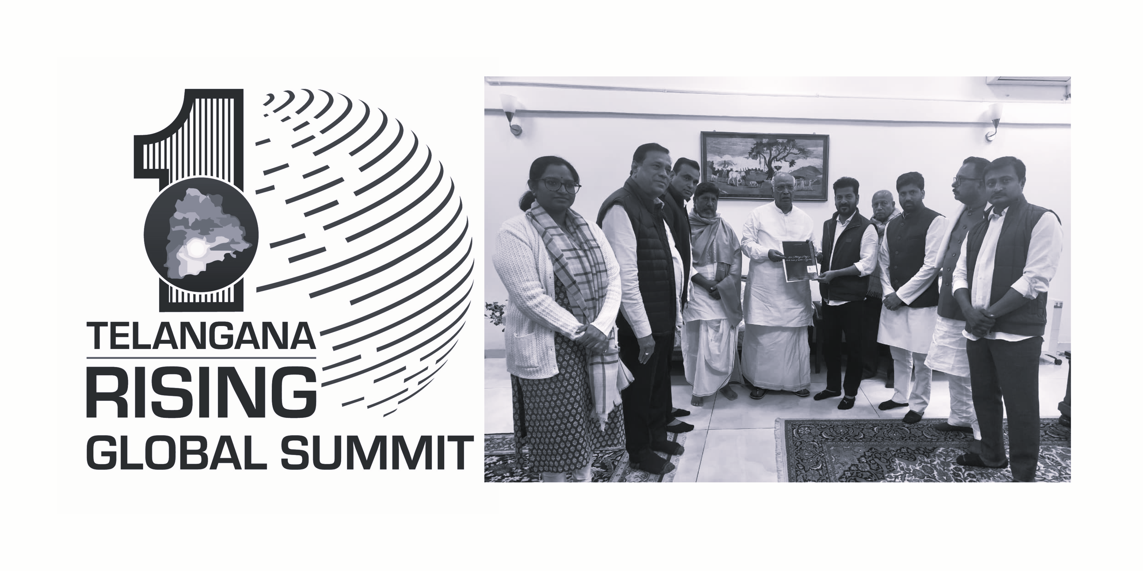 Telangana Chief Minister A. Revanth Reddy reached New Delhi on Tuesday night as part of his outreach ahead of the Telangana Rising Global Summit. Soon after arriving, he met AICC president Mallikarjun Kharge at his residence and formally invited him to attend the event.