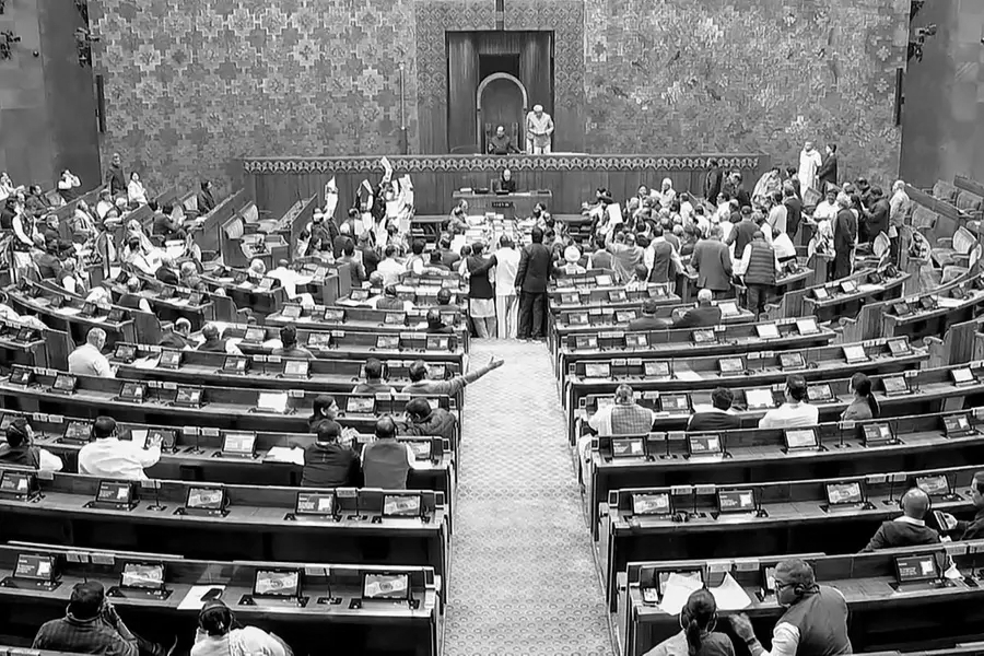 The incident occurred soon after the House met at 3 pm following multiple adjournments. Dilip Saikia , presiding over the House, named the eight MPs for their conduct , and Parliamentary Affairs Minister Kiren Rijiju moved a resolution citing “utter disregard to the House and the authority of the Chair.” The resolution was passed by voice vote, after which proceedings were adjourned amid uproar.