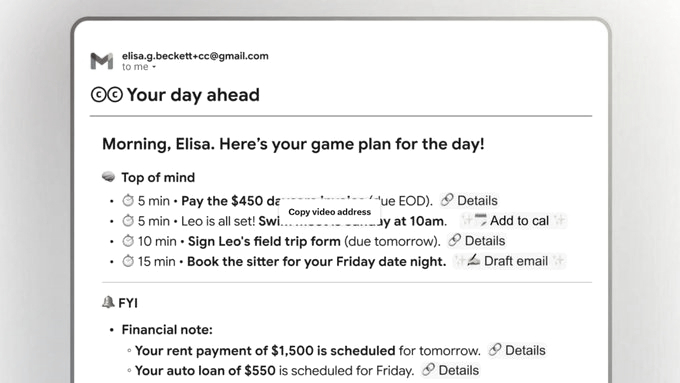 CC works by looking at your emails, calendar events, and files saved in Google Drive. Each morning, it prepares a short summary of important tasks, meetings, and updates, so you know what needs attention that day. This can be especially helpful for professionals, students, and anyone with a busy schedule.