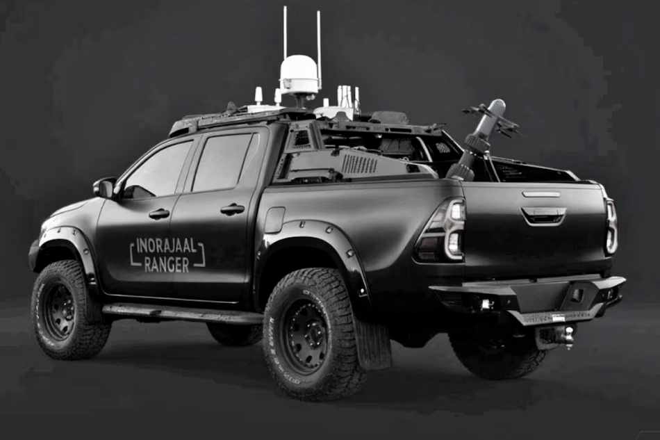 The Indrajaal Ranger has been mounted on an all-terrain 4x4 vehicle and is equipped with multiple drone detection and mitigation technologies. The vehicle integrates GNSS spoofing to disrupt navigation signals, radio frequency (RF) jamming to interfere with drone communication, and a cyber takeover unit capable of remotely controlling rogue drones. A spring-loaded kill switch is also incorporated to provide immediate hard kill capabilities when required.