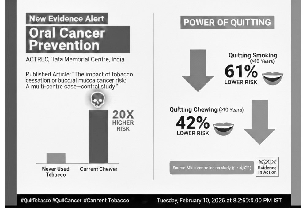 India continues to face a major public health burden, with over 28–30 per cent of adults consuming tobacco in some form. TMC researchers stressed that cessation has tangible benefits even after years of use, underlining that quitting tobacco reduces cancer risk substantially, even if started late .
