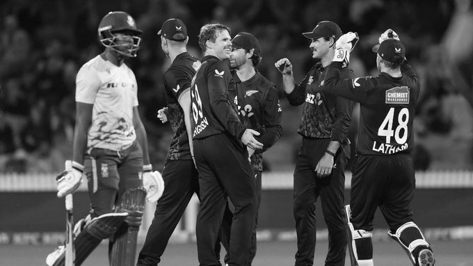Chasing 176, South Africa faltered against disciplined pace bowling. Ben Sears and Lockie Ferguson shared six wickets, bowling South Africa out for 107 in 15.3 overs . All wickets fell to catches, with only George Linde offering resistance, scoring 33 off 12 balls , including three fours and three sixes. Sears, who was a traveling reserve at the recent T20 World Cup, took 3-14 , while Ferguson claimed 3-16 , dismissing Linde to finish the innings.