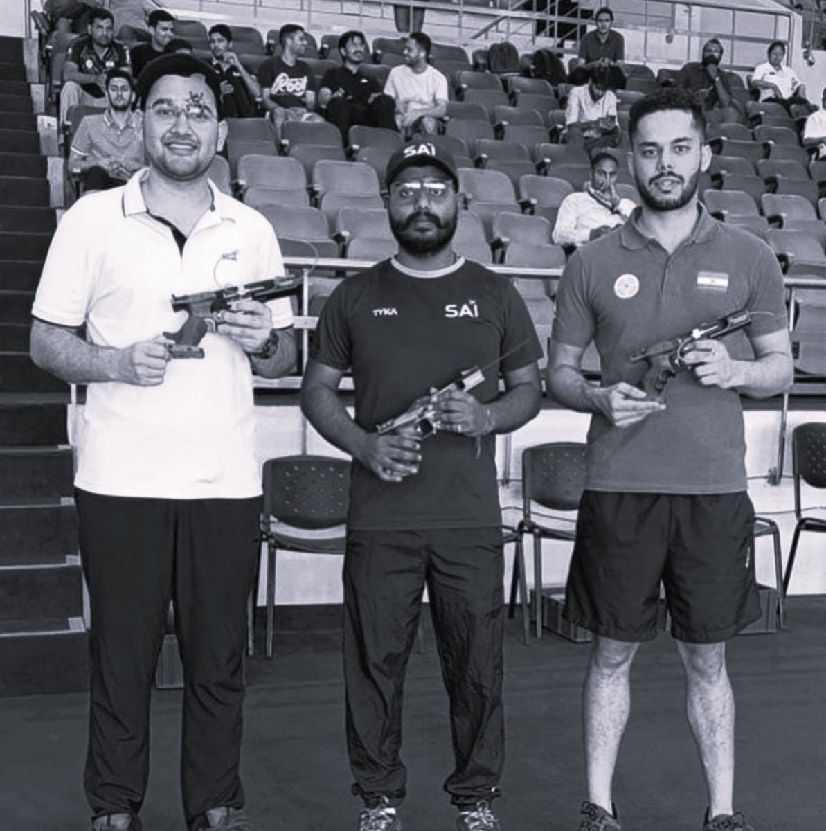 స్థానిక డాక్టర్ కర్ణి సింగ్ షూటింగ్ రేంజ్లో జరుగుతున్న జాతీయ ఎంపిక ట్రయల్స్ (టీ3)లో రాజస్థాన్ షూటర్ భవేష్ షెకావత్ అద్భుత ప్రదర్శనతో ఆకట్టుకున్నాడు. శుక్రవారం జరిగిన పురుషుల 25 మీటర్ల ర్యాపిడ్ ఫైర్ పిస్టల్ విభాగం తొలి దశ (స్టేజ్-1) ముగిసే సమయానికి భవేష్ అగ్రస్థానంలో నిలిచాడు.
